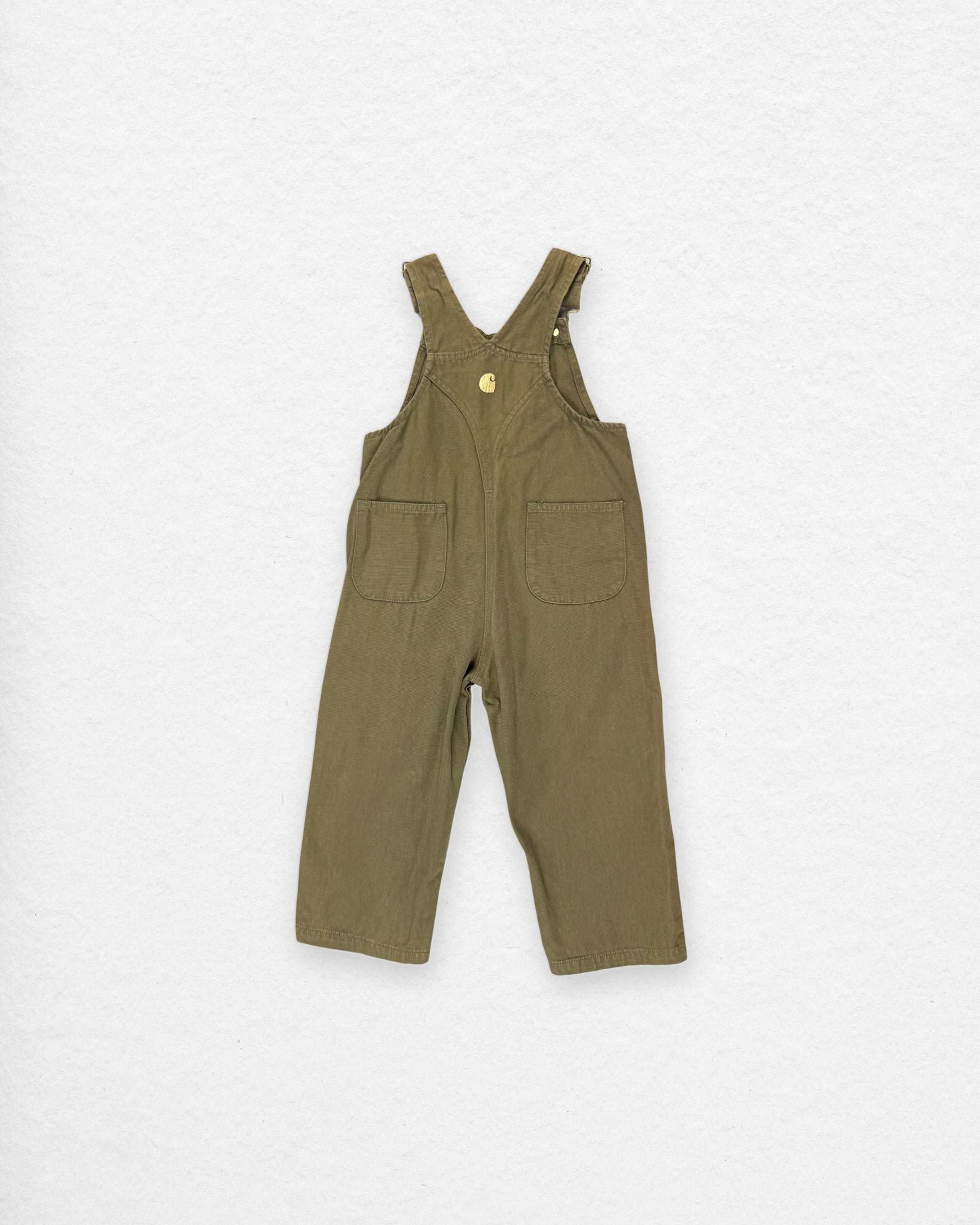 Classic utility style in miniature form. These Carhartt overalls feature a durable cotton canvas in olive green, designed with reinforced knees and brass hardware for a rugged, workwear-inspired look. A timeless staple that pairs effortlessly with tees or knits for everyday wear.