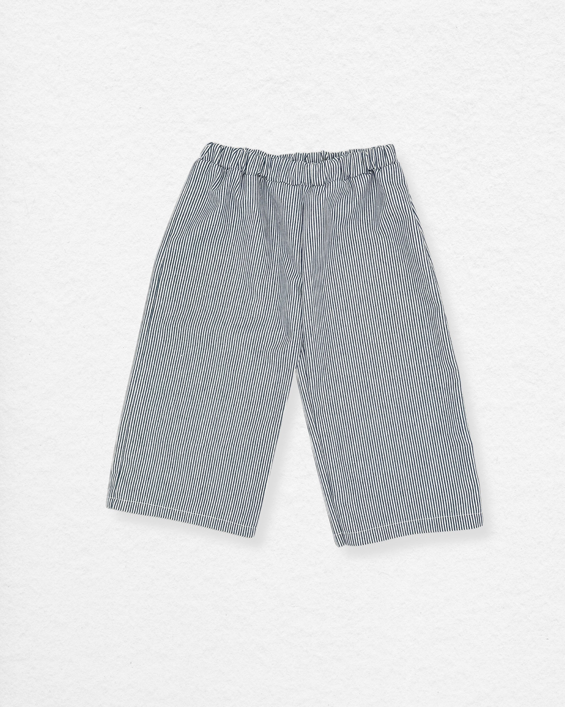 A lightweight pair of vintage-inspired pinstripe pants in a relaxed wide-leg fit. Designed with an elasticated waistband for comfort, making them easy for little ones to wear and move in. The classic navy-and-white stripe adds a timeless touch to any outfit.
