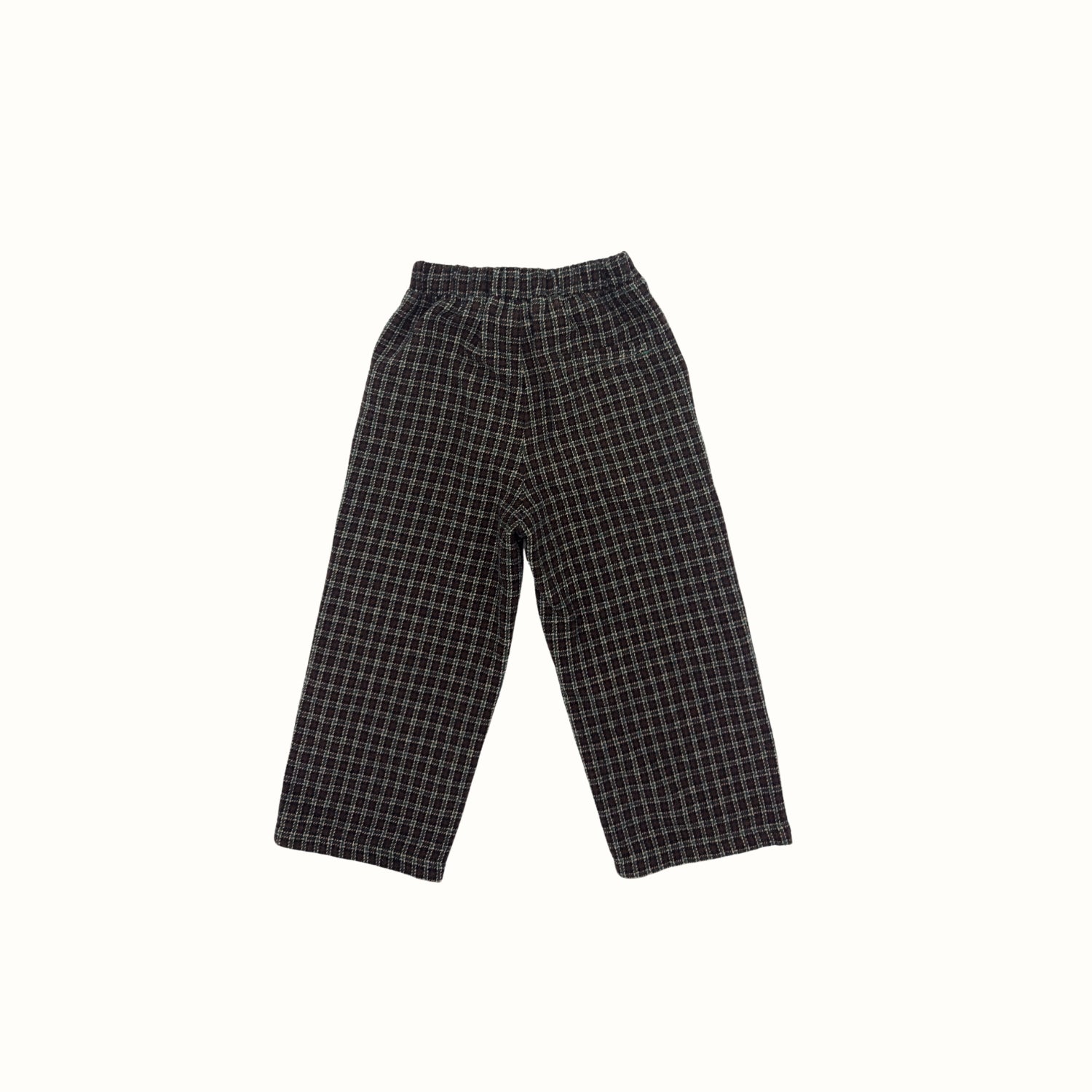 These unbranded vintage pants feature an all-over check print in earthy tones, with a relaxed straight leg and comfortable elastic waistband. Timeless, versatile, and easy to pair with basics or knits—perfect for everyday wear with a retro edge.
