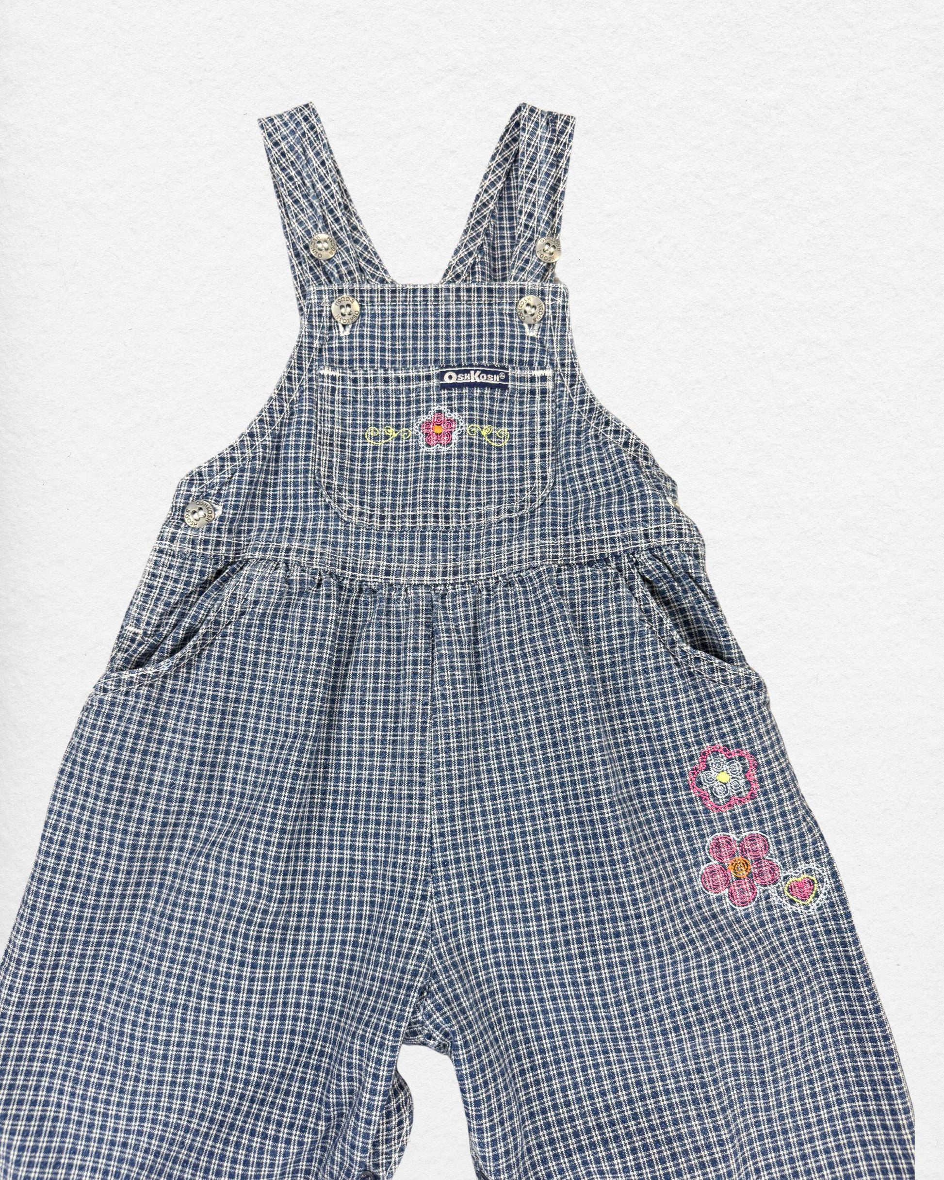 Adorable vintage OshKosh overalls in a blue and white check pattern with floral embroidery details. Made from lightweight cotton for all-day comfort, this piece blends OshKosh’s timeless workwear design with a sweet, playful touch from the 1990s era.