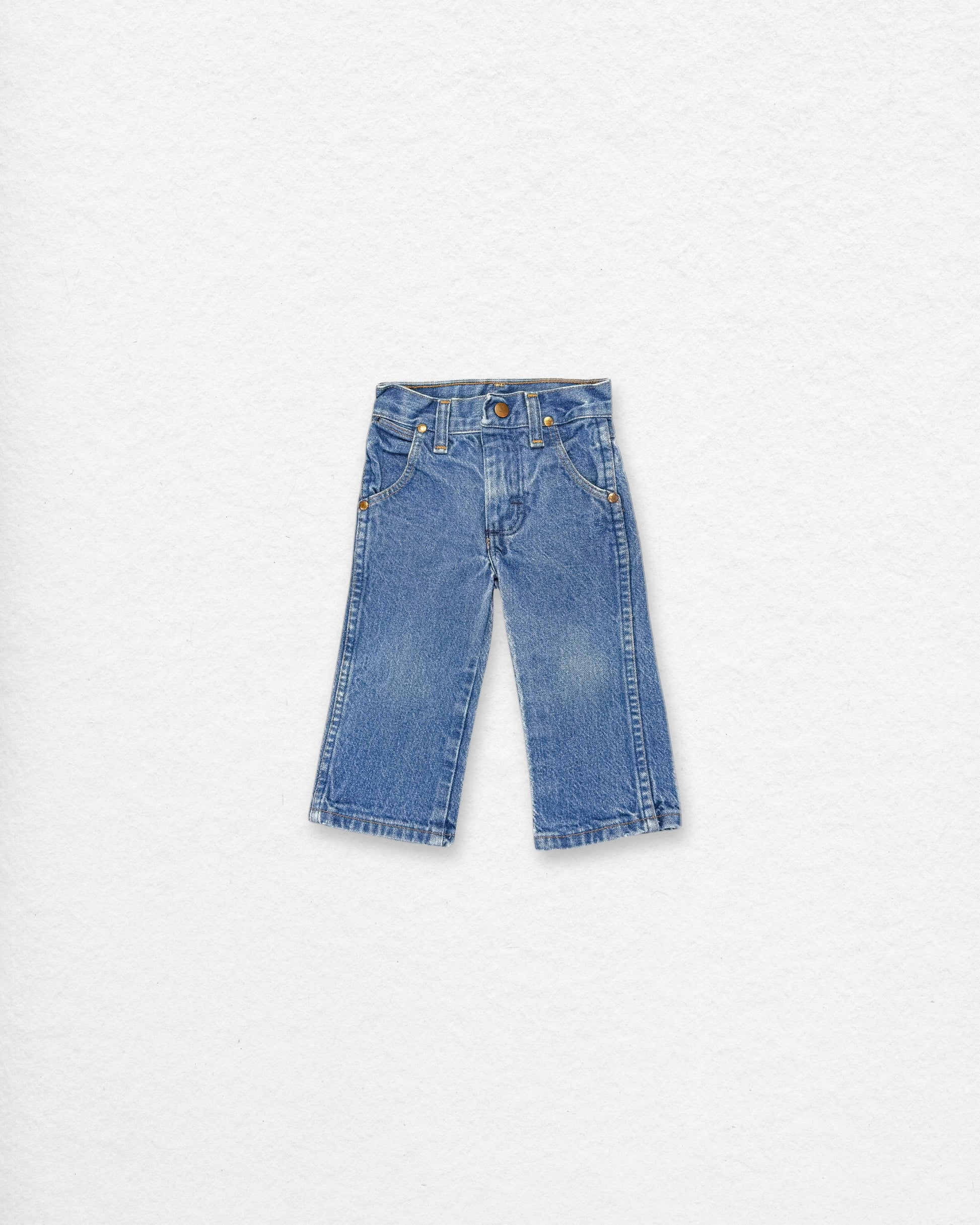 Classic Wrangler kids denim jeans in a timeless blue wash. Featuring contrast stitching, branded rivets, and the signature Wrangler leather back patch. Durable and iconic, these jeans are perfect for everyday wear or as a collectible piece in any little one’s wardrobe.